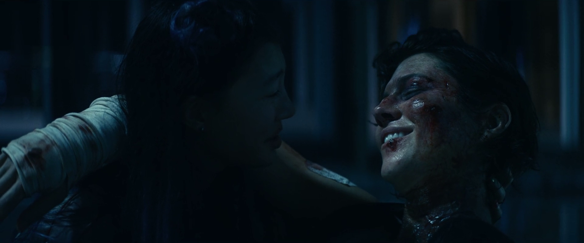 Ahora bien, el gran acierto de Kate, no caben dudas, es MEW. Claro que Miku Martineau y el siempre efectivo Woody Harrelson hacen su parte. Pero es ella ¡got damn!, es MEW quien a pesar de haber sido envenenada con Polonio-204 zigzaguea más de media película toda moribunda casi zombi aplicándose dosis inyectable de adrenalina en el muslo mientras masacra brutalmente a cientos de asesinos entrenados de la mafia japonesa. Es lo más.