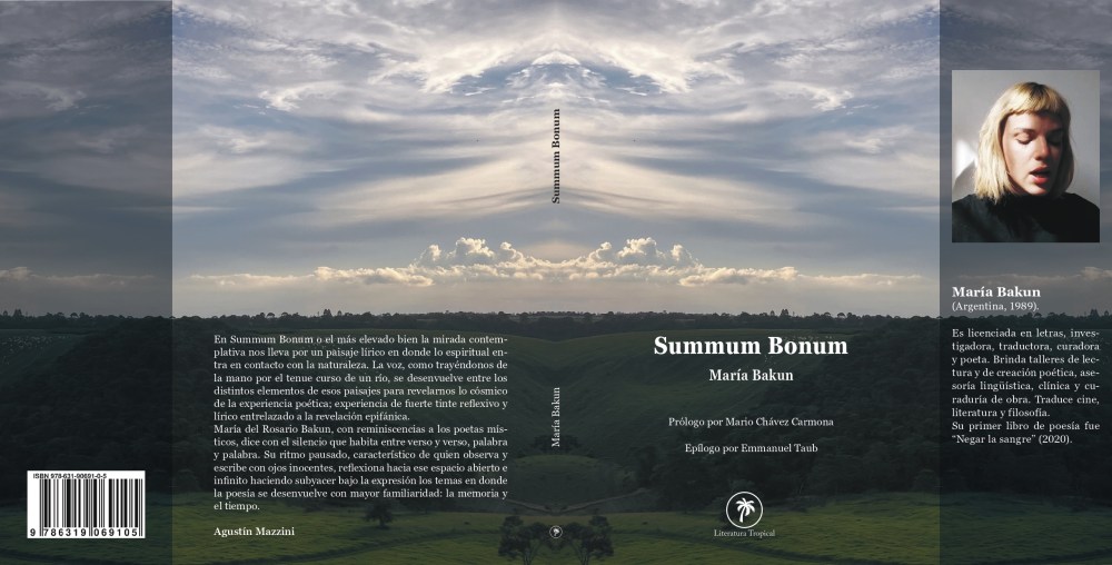 El sello editorial Literatura Tropical (Chaco) publicó Summum Bonum, el último libro de poesía de María Bakun (Corrientes, 1989). Licenciada en Letras, investigadora, curadora y traductora, la autora de Negar la sangre (2020) explicó en esta entrevista, que Summum Bonum “está ligado a la metafísica que subyace en la Ética de Spinoza y su manera de comprender la naturaleza de D’, la mente y las emociones”. Habló sobre la naturaleza y lo divino en la poética creadora de su nuevo libro y señaló: “No encuentro límites más que imaginarios entre la experiencia del mundo, lo divino, y el lenguaje poético”.