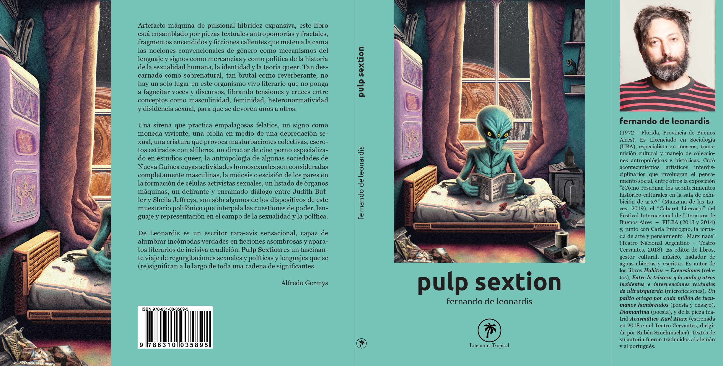 De Leonardis es un escritor rara-avis sensacional, capaz de alumbrar incómodas verdades en ficciones asombrosas y aparatos literarios de incisiva erudición. Pulp Sextion es un fascinante viaje de regurgitaciones sexuales y políticas y lenguajes que se (re)significan a lo largo de toda una cadena de significantes.