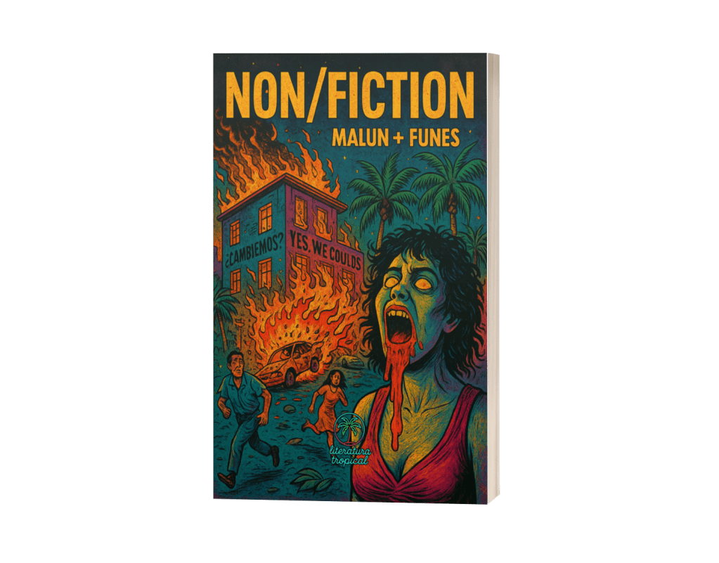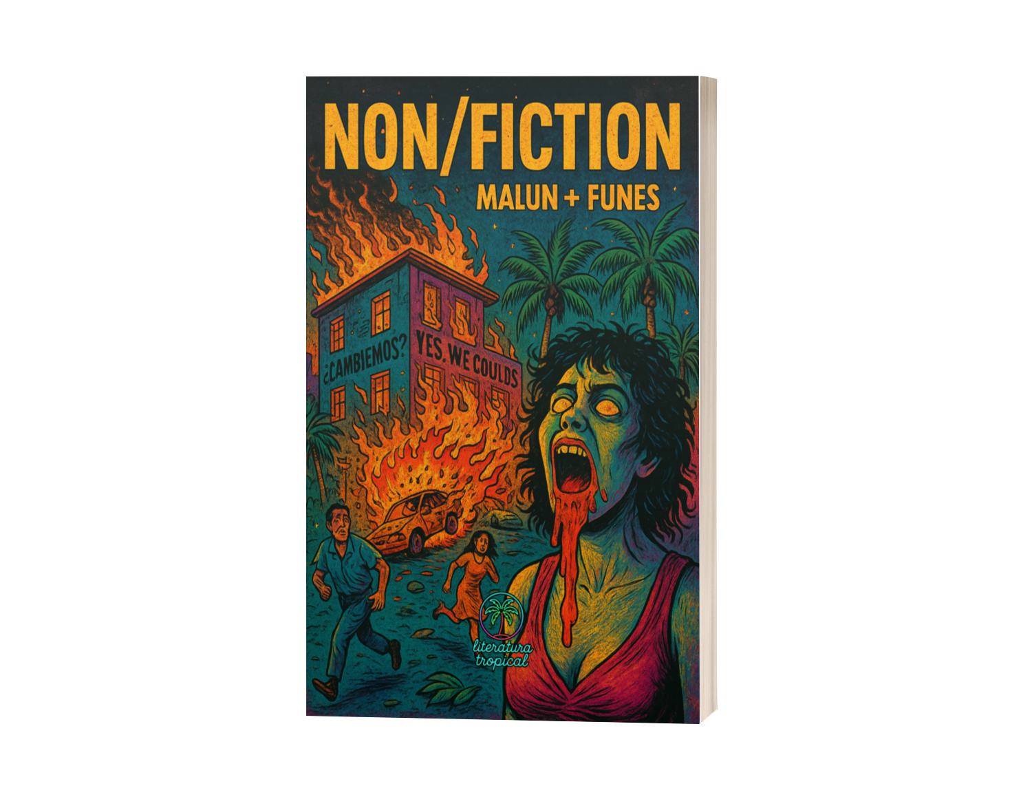 En NON/FICTION, Malun + Funes recogen la podredumbre emocional y estética de la Argentina pre-pandémica, pero el vómito todavía está tibio. Es 2025 y este libro huele igual que el país: a gas lacrimógeno seco, sangre con glitter y páginas de Clarín prendidas fuego. Ensamblado con recortes de diarios, versículos paranoides y diarreas líricas del inconsciente litoraleño, este artefacto poético no pide permiso: infiltra lo real como virus tropical. No es poesía de la calma: es poesía en llamas, con drones, virgenes mutantes, Menem como espectro y milicos de cartón piedra. El presente nacional se funde con el delirio: el hambre sigue, la represión se actualiza, los discursos se hacen meme, y el lenguaje, ese último bastión, también se pervierte.