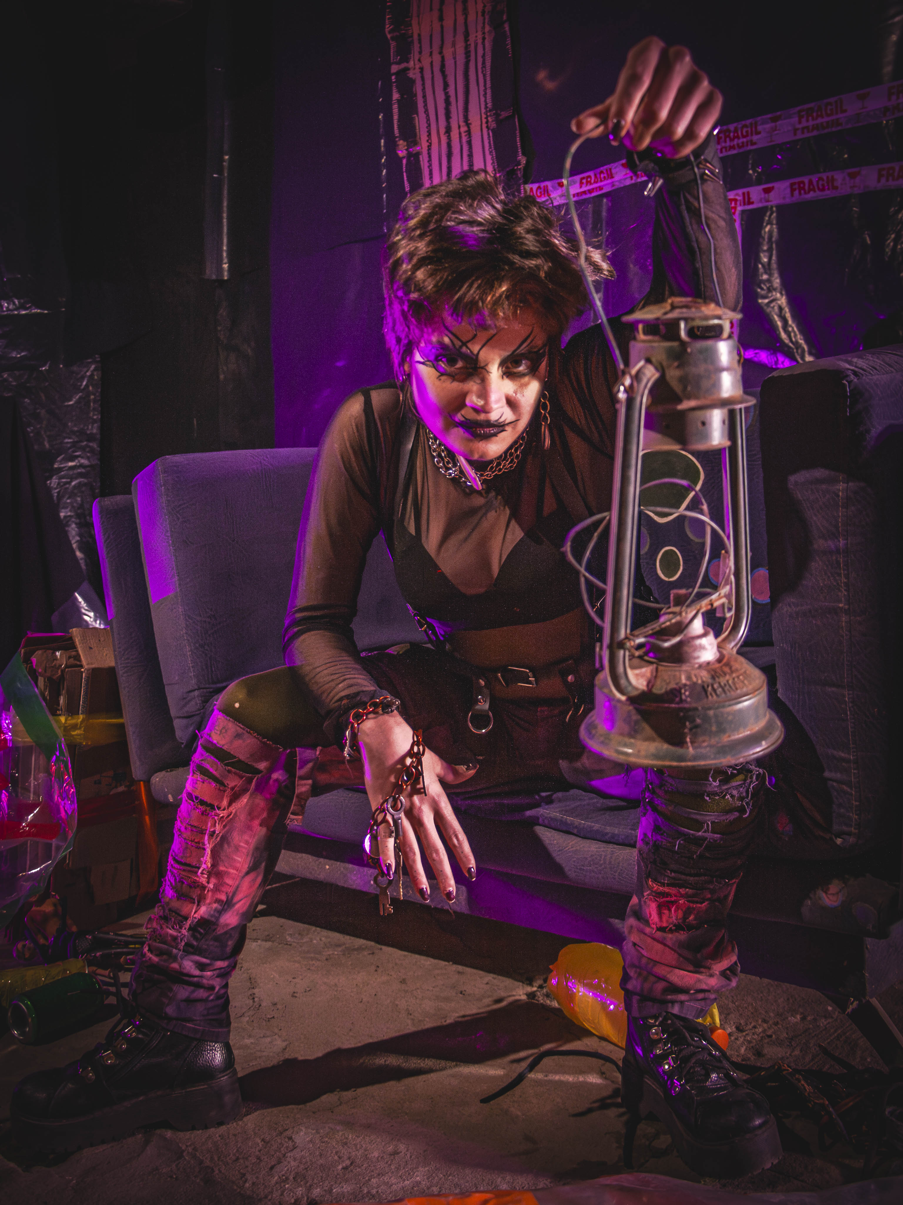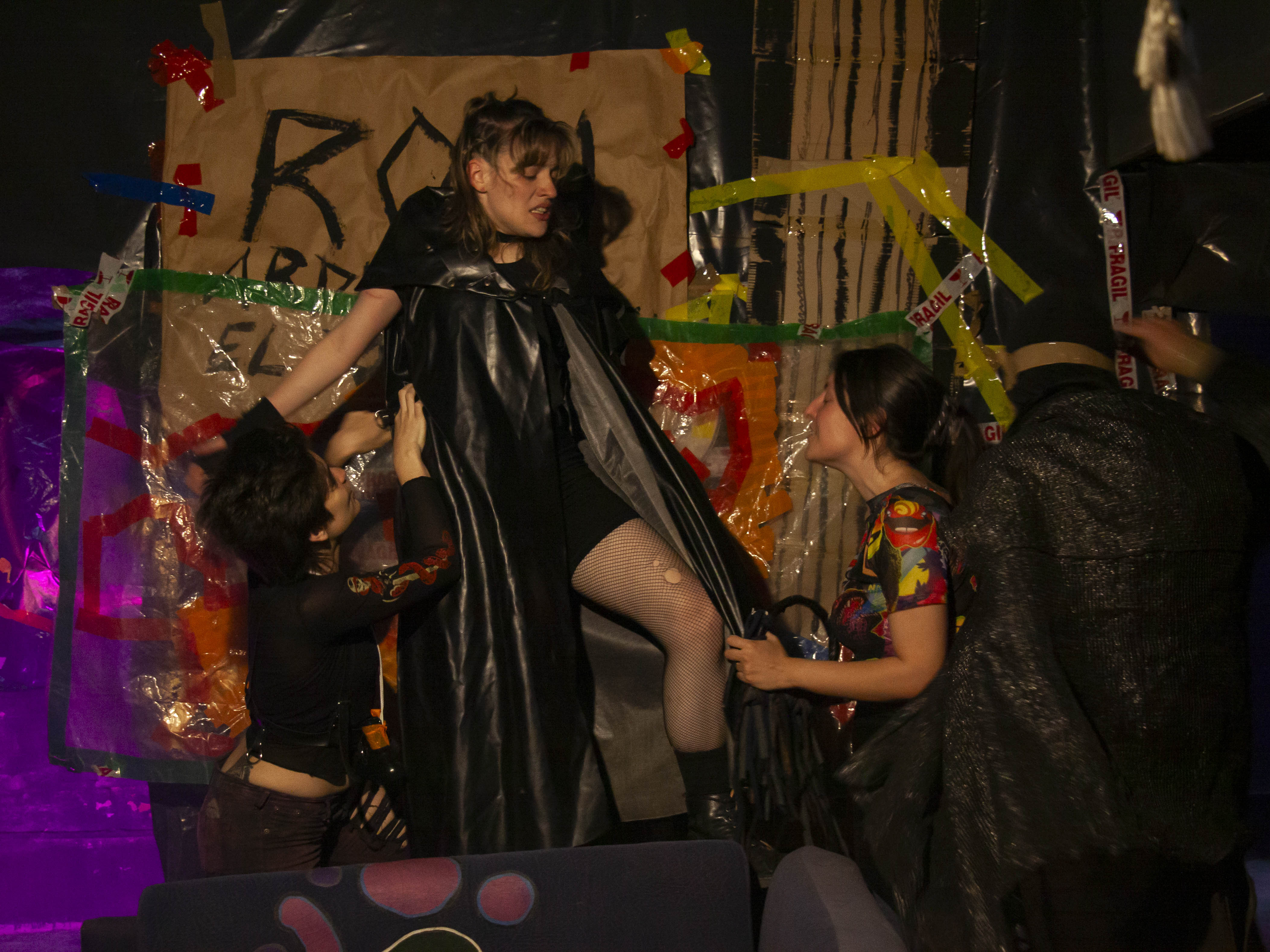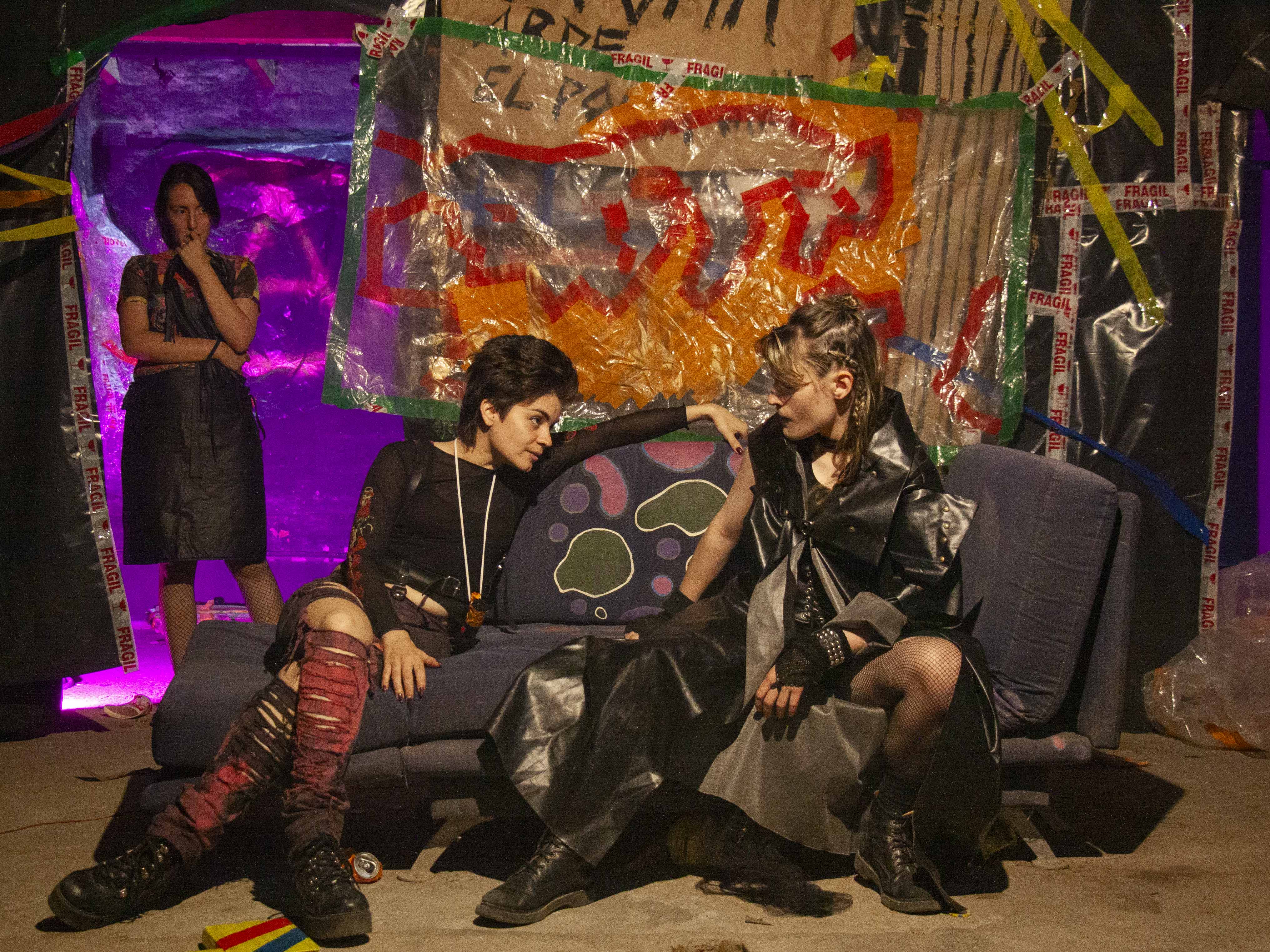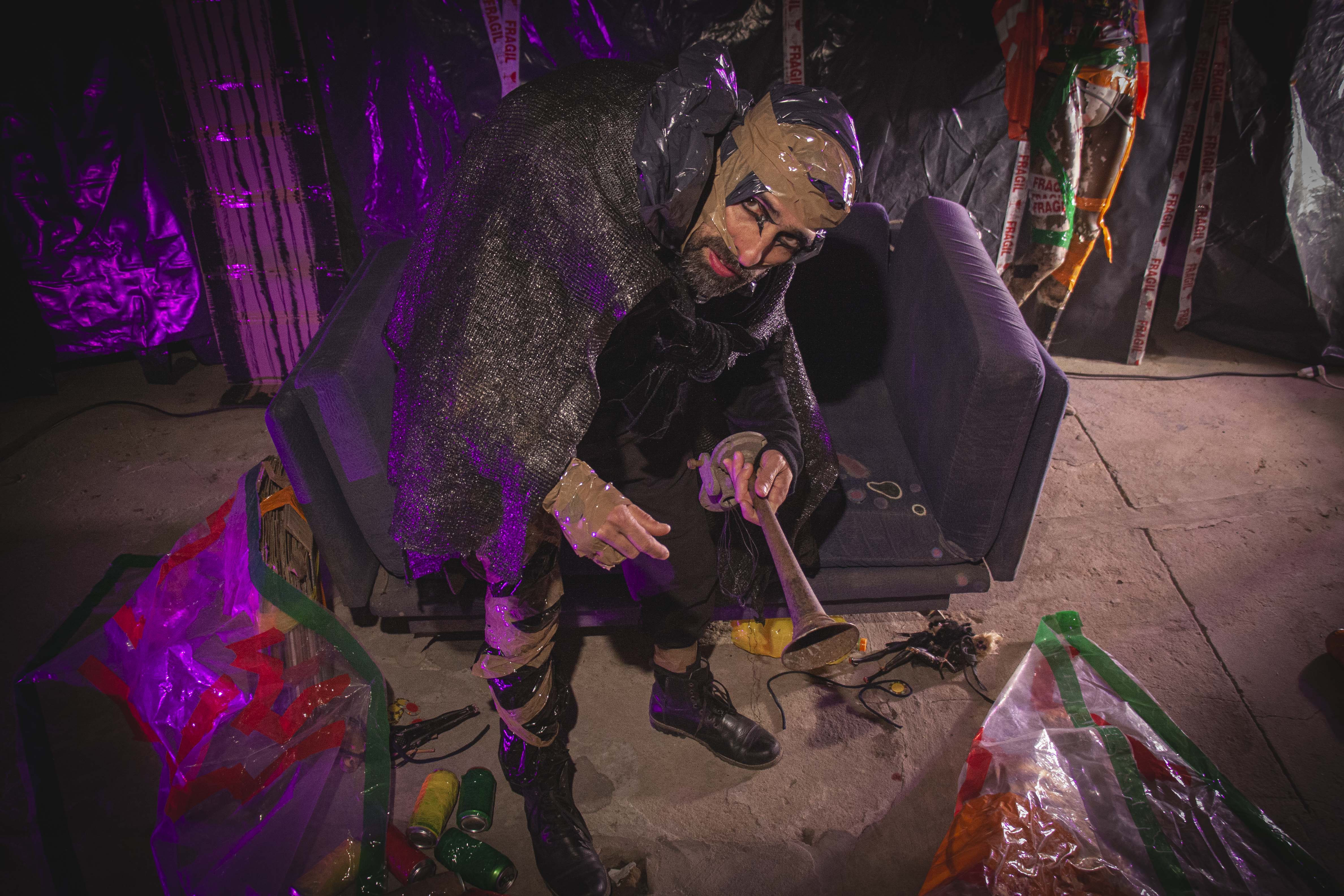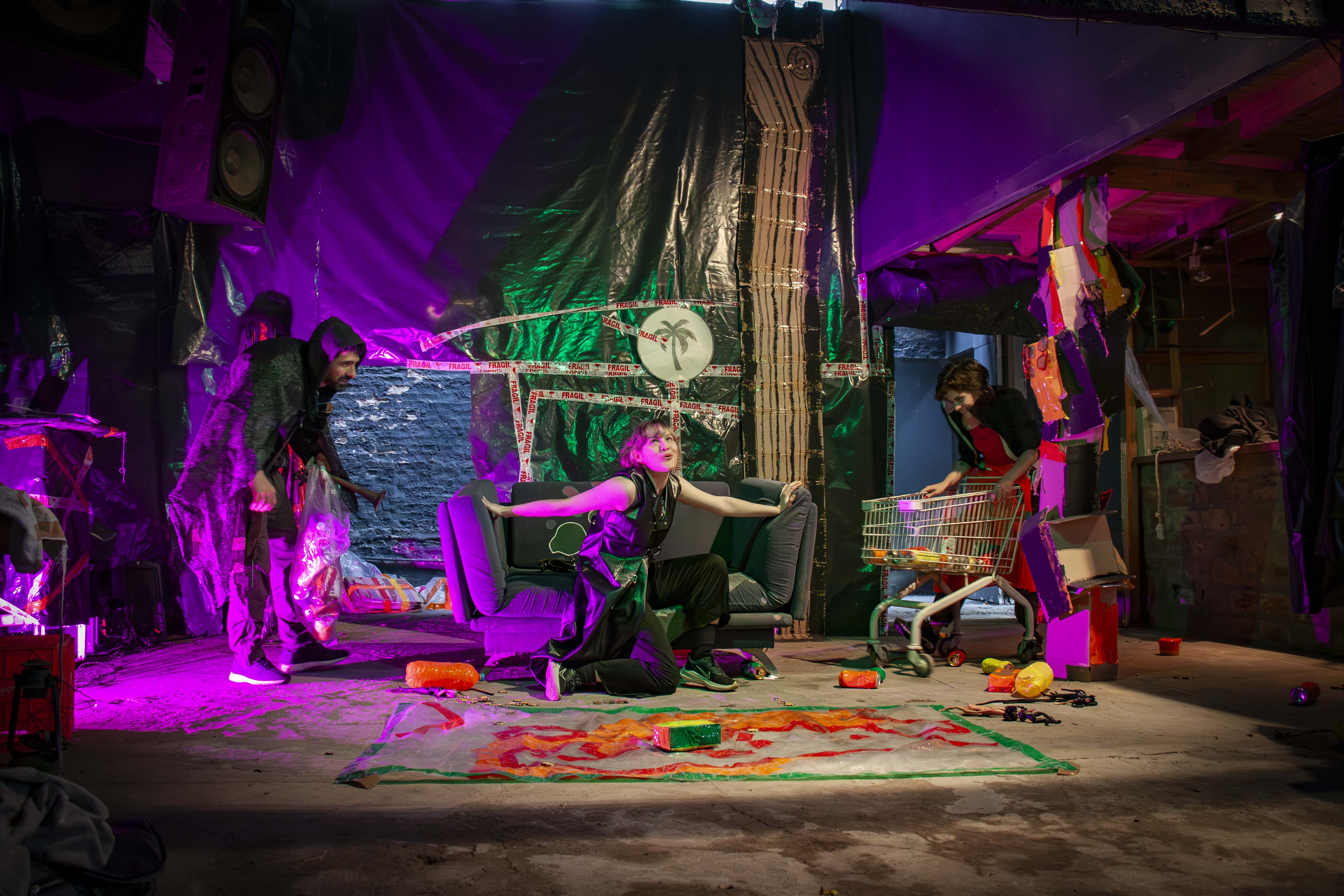 ADVERTENCIA AL PÚBLICO. La obra Nerón: el retorno del hombre nuevo se desarrolla en un espacio no convencional. El público permanecerá de pie o sentado en el suelo, entre cartones, como parte del dispositivo escénico. Durante la función se presentan interludios musicales de alto volumen, escenas de sexo explícito, violencia y consumo de estupefacientes simulados. Se recomienda discreción. Prohibido el ingreso a menores de 16 años.