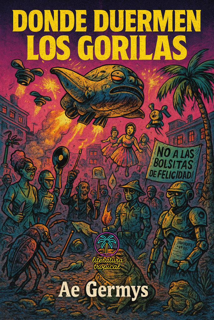 Un gobernador goriloide que gobierna desde el aire. Travestis en busca de justicia post-electoral. Funcionarios-cucaracha, poetas del corralito y androides en huelga simbólica. Donde duermen los gorilas es una colección de cuentos que cruzan ciencia ficción sudaca, realismo del conurbano del alma y sátira política anfibia. En esta fauna narrativa, la especie en extinción es la sensibilidad, y lo que queda se organiza en cuerpos raros, gestos rotos y discursos reciclados. Cada cuento es un manifiesto deforme, una fábula enferma que revela la arquitectura simbólica de un país gobernado por hologramas, féretros culturales y consignas impresas en licitaciones truchas. Crudo, brillante, fallado: este libro no duerme. Espera.