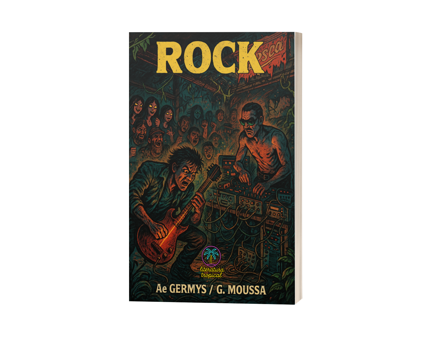 En el fondo sudoroso del certamen “Banda Pepsi Cola del Año”, mientras las luces se queman y los sponsors chorrean poder corrupto, Los Cenobitas preparan su venganza sónico-política. Funes y Litter —ex escritores devenidos noise, ex militantes devenidos plagiadores seriales de su propia leyenda— enfrentan al aparato cultural desde un escenario podrido, con una guitarra de una sola cuerda y un campo sonoro perturbador capaz de reventar tímpanos y sentidos comunes. Rock es una épica barrial distorsionada, donde las bandas compiten con machetes, los jurados son punteros culturales, y la música no es expresión: es guerra. Con participación especial de Materia Fecal, Los Lamisiles, Las Maryshelley y Flequillo Tremebundo, la novela atraviesa el delirio de la escena musical chaqueña como si fuera una misa noise donde se mezclan Aphex Twin, folklore digitalizado y conspiraciones de gobierno. Entre estadios con olor a Raid, DJs quemados, orgías de micrófonos y sets interrumpidos por atentados simbólicos, Rock ofrece lo que pocos se animan: una poética del fracaso amplificado. Porque el verdadero underground ya no toca en bares: milita en tribunales de cuentas y archivos .wav intervenidos.