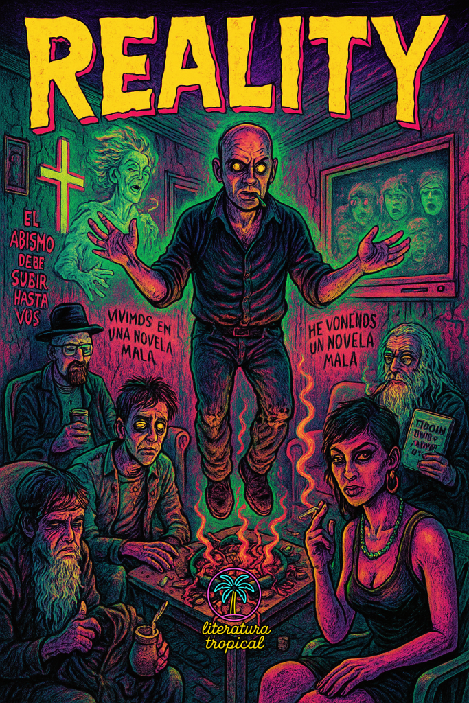 Reality no es una novela: es un circuito cerrado donde la literatura muere una y otra vez en cámara lenta. Un experimento de vigilancia simbólica donde escritores fracasados —sobras sensibles del canon— son arrojados al ojo húmedo del espectáculo. ¿La consigna? Que se traicionen. Que se exhiban. Que sangren.